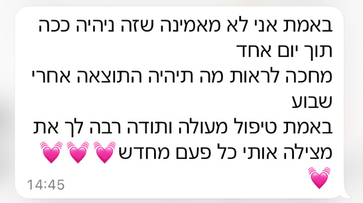 טיפול אישי וקפדני שמלווה אתכם צעד אחר צעד – מהקליניקה ועד הבית. תוכנית טיפולית מותאמת במיוחד לצרכים ולאורח החיים שלכם, עם תוצאות שתוכלו לראות ולהרגיש בעצמכם.